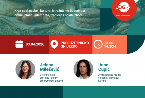 Food Hub - Centar IzvrsnostiOpšti cilj Centra izvrsnosti za digitalizaciju procesa procjene mikrobiološke bezbjednosti hrane i identifikaciju parametara kvaliteta neophodnih za sertifikaciju autentičnosti hrane (FoodHub) je da ponudi pouzdana, naučno zasnovana rješenja za uklanjanje rizika od bezbjednosti hrane i identifikaciju opasnosti, digitalizovane alate za procjenu rizika od bezbjednosti hrane, pouzdano sertifikovanje i praćenje autentičnosti hrane, promociju i spremnost za upotrebu aplikacija u industriji proizvodnje hrane i u turističkom sektoru.